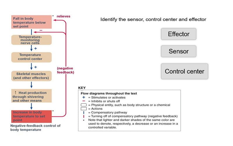 Identify the sensor, control center and effector