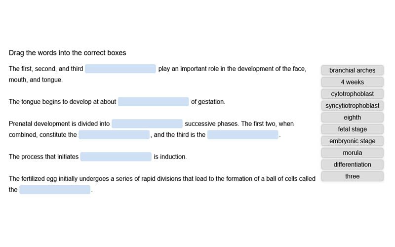 Fill in the Blanks: Prenatal Development